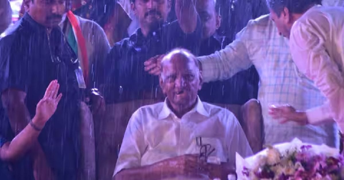 मुंबई. राष्ट्रवादी कांग्रेस पार्टी (एनसीपी) के संस्थापक शरद पवार ने रविवार को बारिश के बीच भाषण दिया, जिससे अक्टूबर 2019 में दिए गए उनके एक
